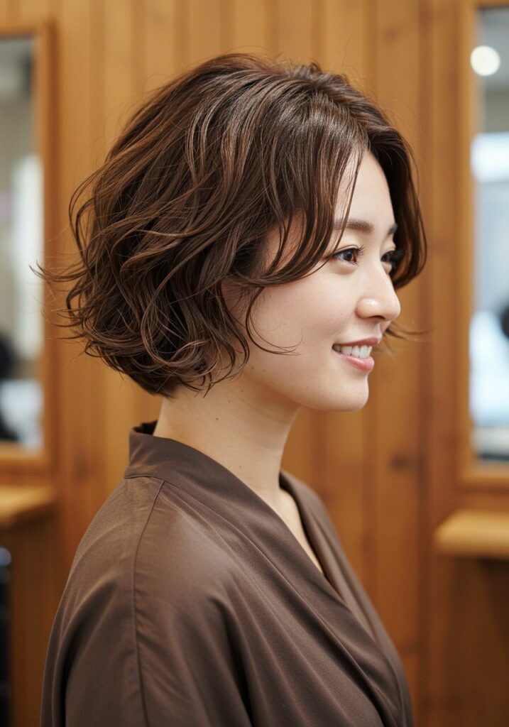 サイドを短く、トップに動きをつけたスタイルで、トレンド感と若々しさを演出します。
